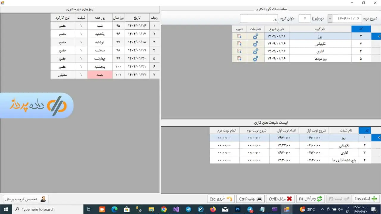 تعریف واحدهای کاری، شیفتها و گروههای کاری