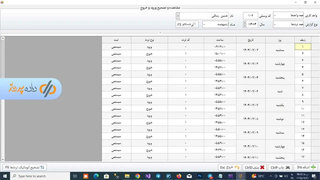 - تصحیح گروهی ترددها و مدیریت استثناها