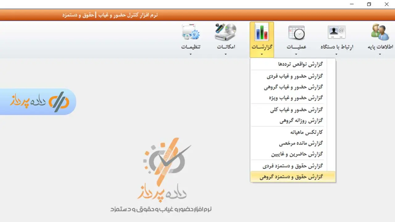 نرمافزار تخصصی حضور و غیاب و حقوق دادهپرداز: مدیریت هوشمند تردد پرسنل، محاسبه خودکار حقوق و مزایا، گزارشات تحلیلی و یکپارچهسازی با دستگاههای بیومتریک